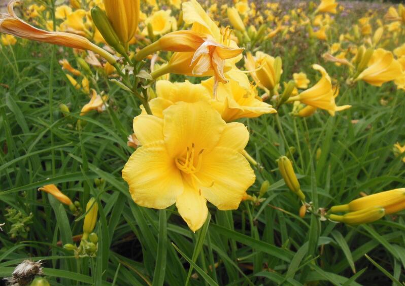 金娃娃萱草圖片草 時間:2025-11-10 22:10:01 金娃娃萱草是屬于一種園藝栽培的品種,作為綠化美觀使用非常的適合,主要就是每年的花期比較長,可以分為盛花期以及續(xù)花期,每一朵花開花都可達到7天左右,生長時候的高度在30厘米左右,下面是小編為大家找的金娃娃萱草圖片草大全