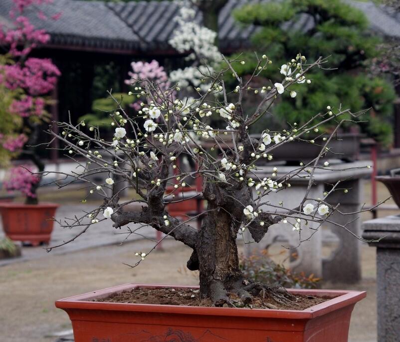 紅梅盆景圖片大全欣賞 時間:2025-11-10 22:10:01 把梅花當做盆景來栽種是很適合,特別是紅梅花盆景,梅花屬于落葉小喬木,在每年的春季的時候都會出現落葉,第2年春天到來的時候會重新生長,梅花的高度一般是在三米左右,下面是小編為大家找的紅梅盆景圖片大全欣賞大全