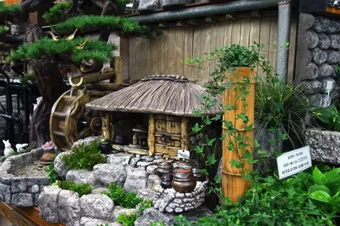 市場內(nèi)銷售水生植物的攤位制作的小水景