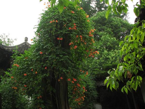 將凌霄種植于假山的縫隙處,或者再適當控制其株型,使其驚艷而不喧賓奪主,花開之時,繁花艷彩,更覺動人。
