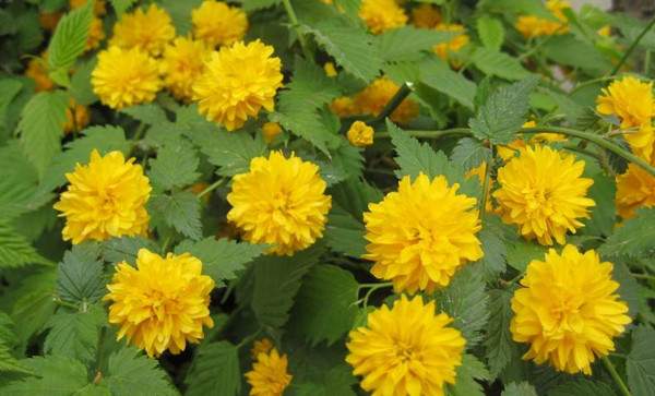 棣棠是北方園林綠化常用的落葉花灌木,植株高度一般0.8~1.5米,纖細瘦弱的枝條,顏色碧綠,匍匐生長,直立性較差,棣棠葉子也是綠色,葉子長2~10cm寬1.5~4cm。每年4月5月開花,花朵金黃,直徑4cm,重瓣。