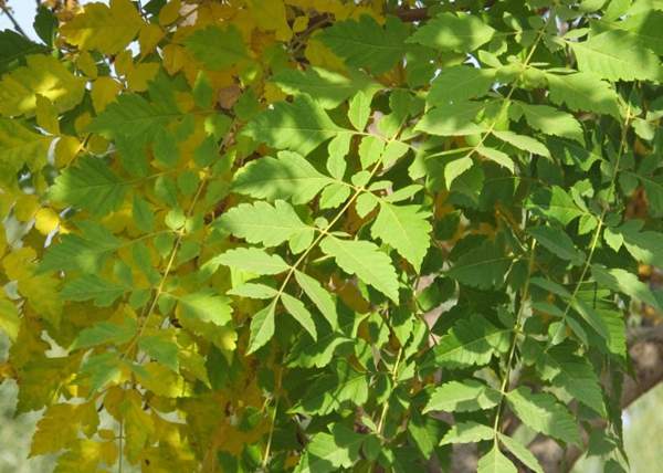 欒樹的葉子有不規則的鋸齒,有的到底根部,這是顯著的特點;