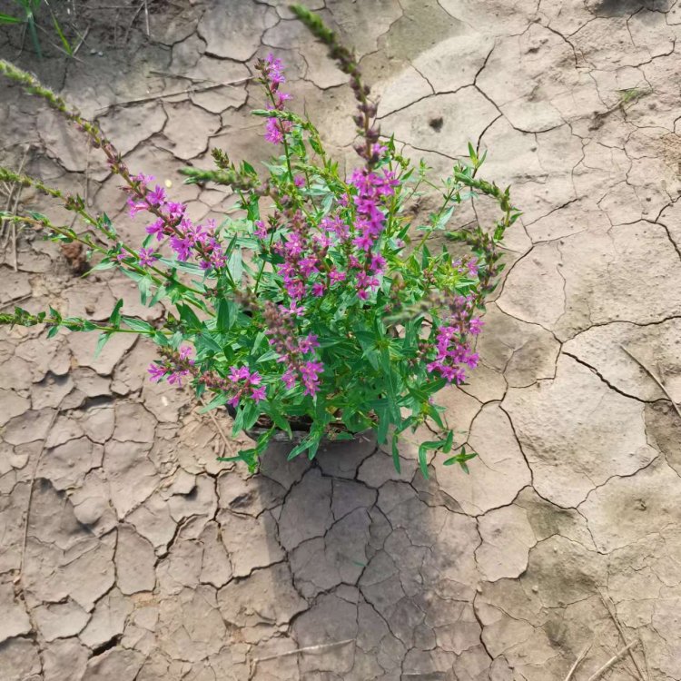 千屈菜又叫水枝柳、水柳、對(duì)葉蓮等,多年水生宿根草本植物,植株高約1米,直立生長(zhǎng),主桿上有許多分枝,葉子對(duì)生,披針形。葉子長(zhǎng)4~6cm,寬1cm左右。總狀花絮長(zhǎng)在最上面,長(zhǎng)約30cm,花朵簇生。喜歡溫暖濕潤(rùn)陽(yáng)光充足的環(huán)境,在我國(guó)南方和北方地區(qū)都有野生的,生長(zhǎng)在沼澤、湖畔、池塘等淺水地區(qū)。它耐寒性強(qiáng),在山東、河南、北京等地均可自然越冬,霜降以后地面部分枯死,地下部分進(jìn)入泥土休眠,在淺水的河邊和低洼潮濕的地方生長(zhǎng)態(tài)勢(shì)最好,對(duì)土壤的要求不嚴(yán)。千屈菜的生命力極強(qiáng),管理也可粗放,栽培的環(huán)境只要保證光照充足、通風(fēng)良好即可,在生長(zhǎng)期要經(jīng)常打頂促使其矮化分蘗,長(zhǎng)出豐滿(mǎn)茂密的株型。